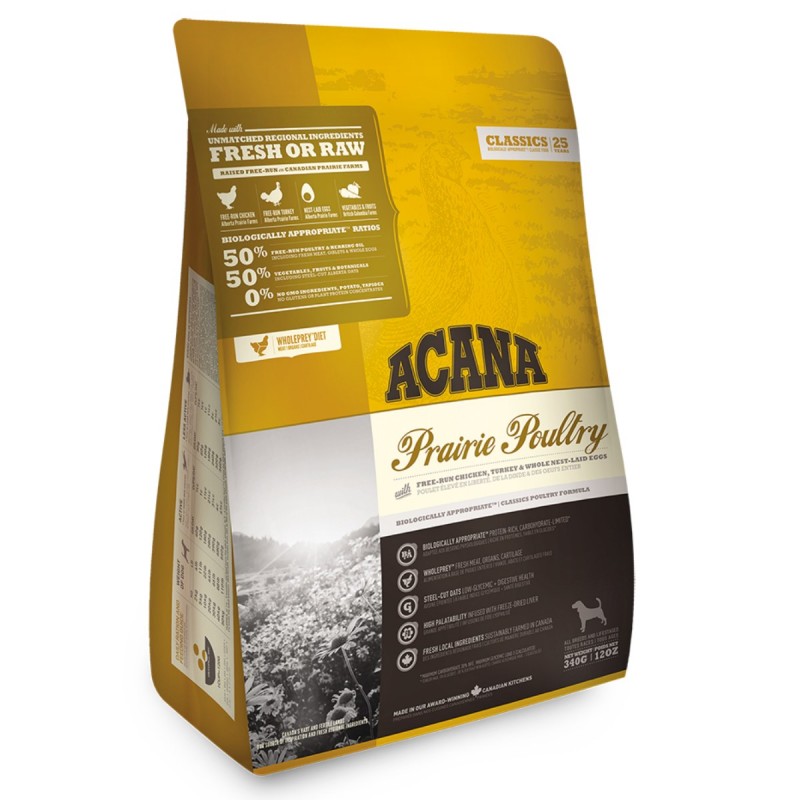 - Feed class holistic Acana have a line designed for puppies. This food is suitable for the fast-growing organism and is balanced in the amount of proteins and carbohydrates. The share of natural meat in the feed is at least 60-65%. In addition, it includes hypo-allergic oats, as well as fruits and vegetables. Using such food, you can be sure that the puppy will receive a daily dose of vitamins and proteins.