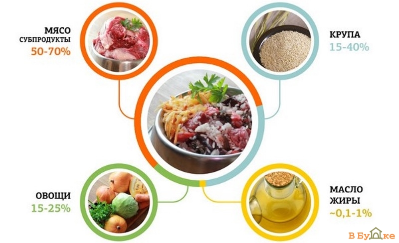 To determine the volume of servings for natural feeding should be based on the breed of the dog and its weight. The average daily requirement for a dog aged 2-3 months for a particular product will be as follows: