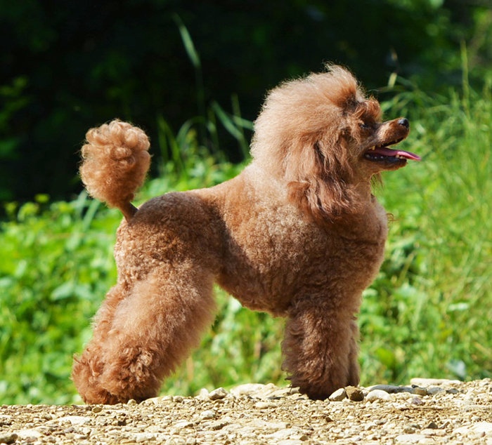 - The average poodle. Dogs differ from other representatives of this breed only in size. This is not only great circus artists, but also true friends, and security guards. They behave intelligently and do not bark without a reason. Fluffy wool will not crumble at your home carpet and hang tufts on clothes, but care for it needs very troublesome.