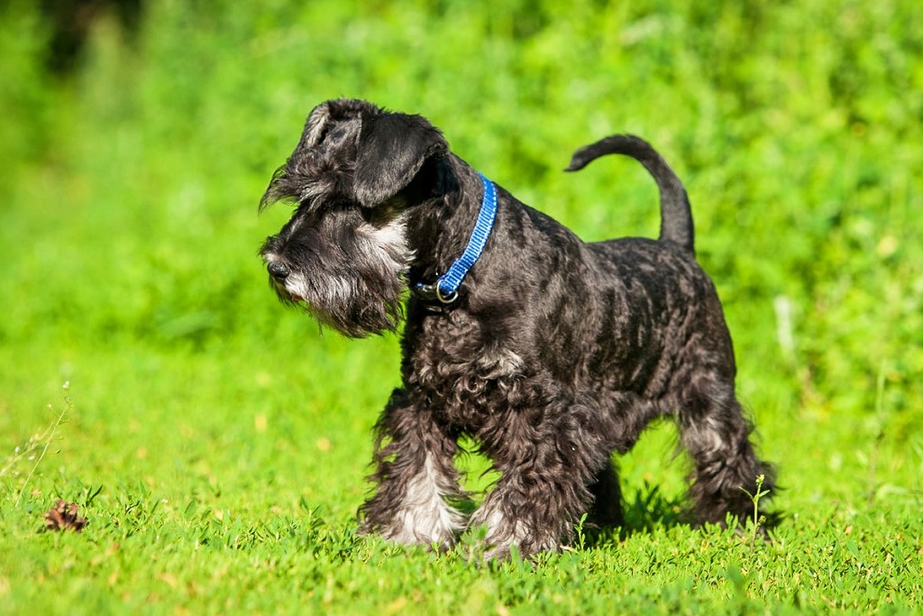 - Miniature schnauzer. Brave friend, smart, funny and very active. The dog has a hard coat with a dense undercoat. Permanent trimming and cutting are required.