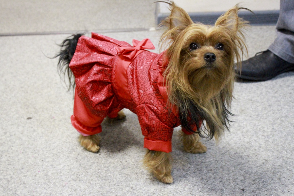 So that the dog does not get dirty, and the wool harnesses do not fall into mats, the pet needs clothes. The dog is intelligent, highly organized, non-aggressive, gets along with other animals.