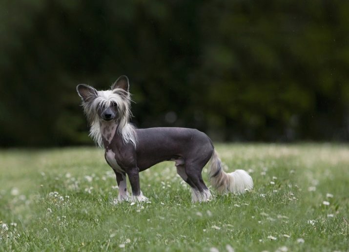 - Chinese Crested Dog. This is a funny creature completely devoid of hair on the body. Long hair is only on the face, on the ears and paws. There are individuals covered with a rare thin fluff.
