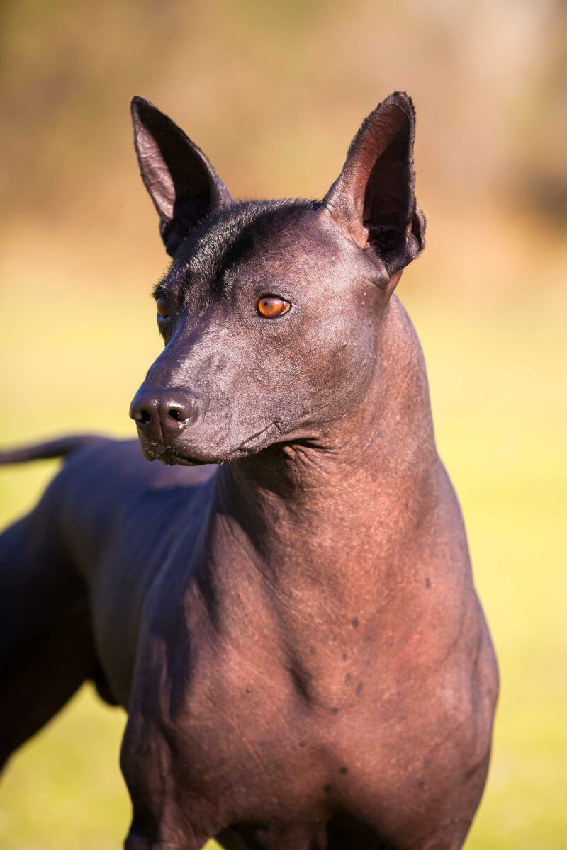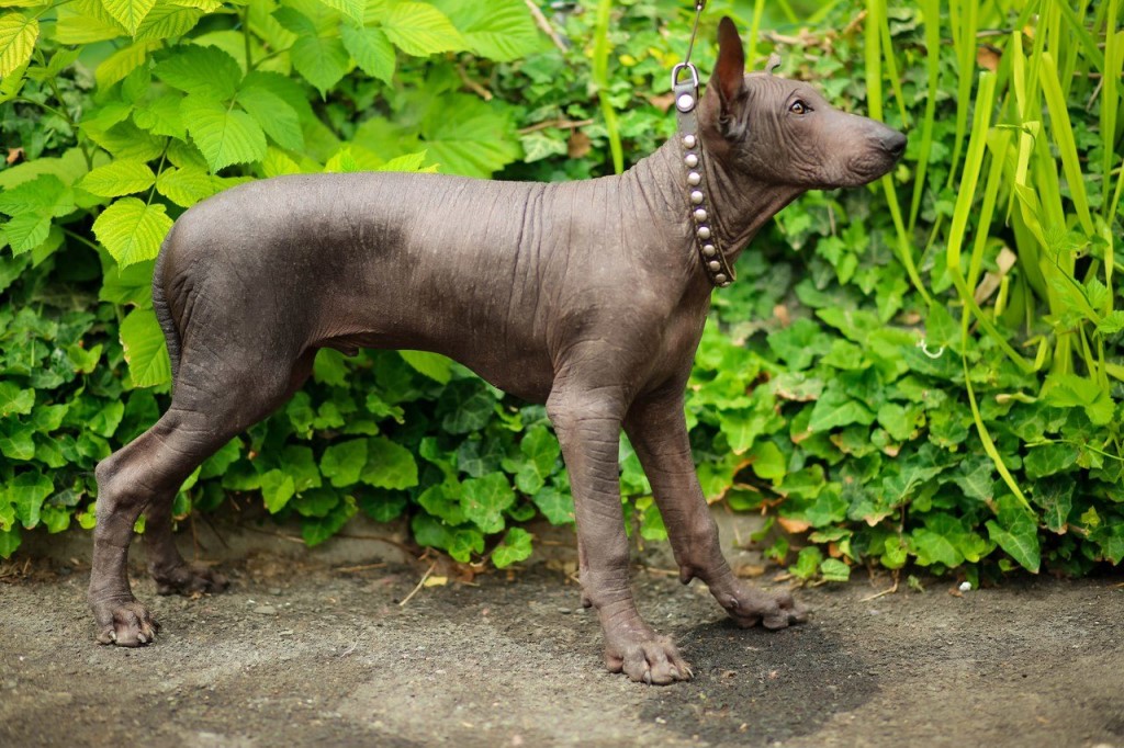 An adult xoloitzcuintle dog looks very impressive. The animal has a powerful build, graceful forms and has a rather proportional physique.