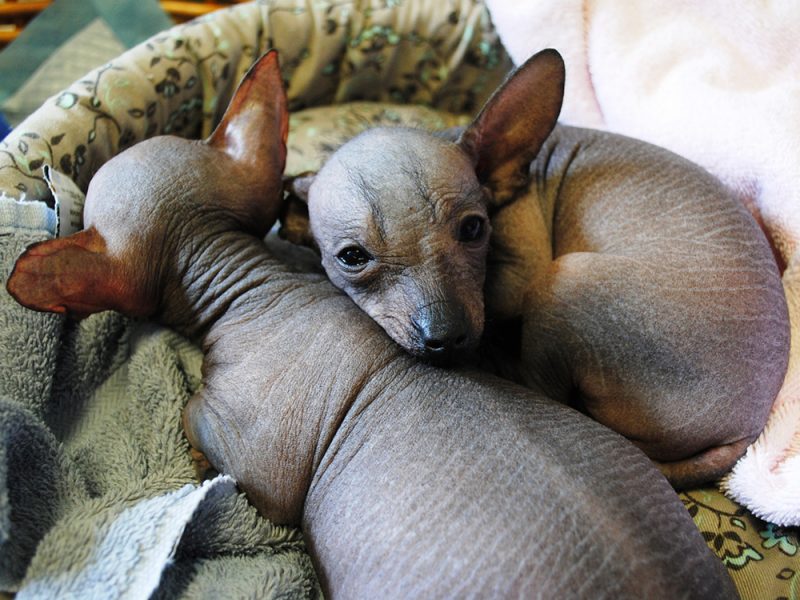 Due to the absence of coat, care for a naked Mexican dog is quite simple. Bald animals do not suffer from parasites, do not need regular combing and frequent washing. In addition, Xoloitzcuintle does not fade and does not smell. Therefore, the main object of care for such dogs is the skin. It is necessary to wipe it weekly with a damp cloth and periodically lubricate it with a special moisturizer that you should buy at the pet store.