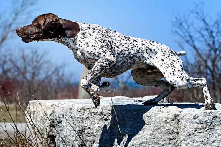 The front of the animal has tight bones, the musculature is well developed. Paws are oval or round, at the ends there are pads and claws. On the hind limbs articular angles are strongly pronounced. The hips of the dog are the same muscular, widely spaced. Kurzhaar is a sweeping gait. The main load falls on the hind limbs, so the animal relies on them and pushes off, while the front simply throws ahead of itself. Proud posture is maintained when running.
