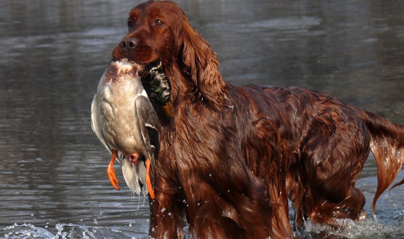 Spaniels and Russians are most often purchased for working with game birds, including land and water bodies.