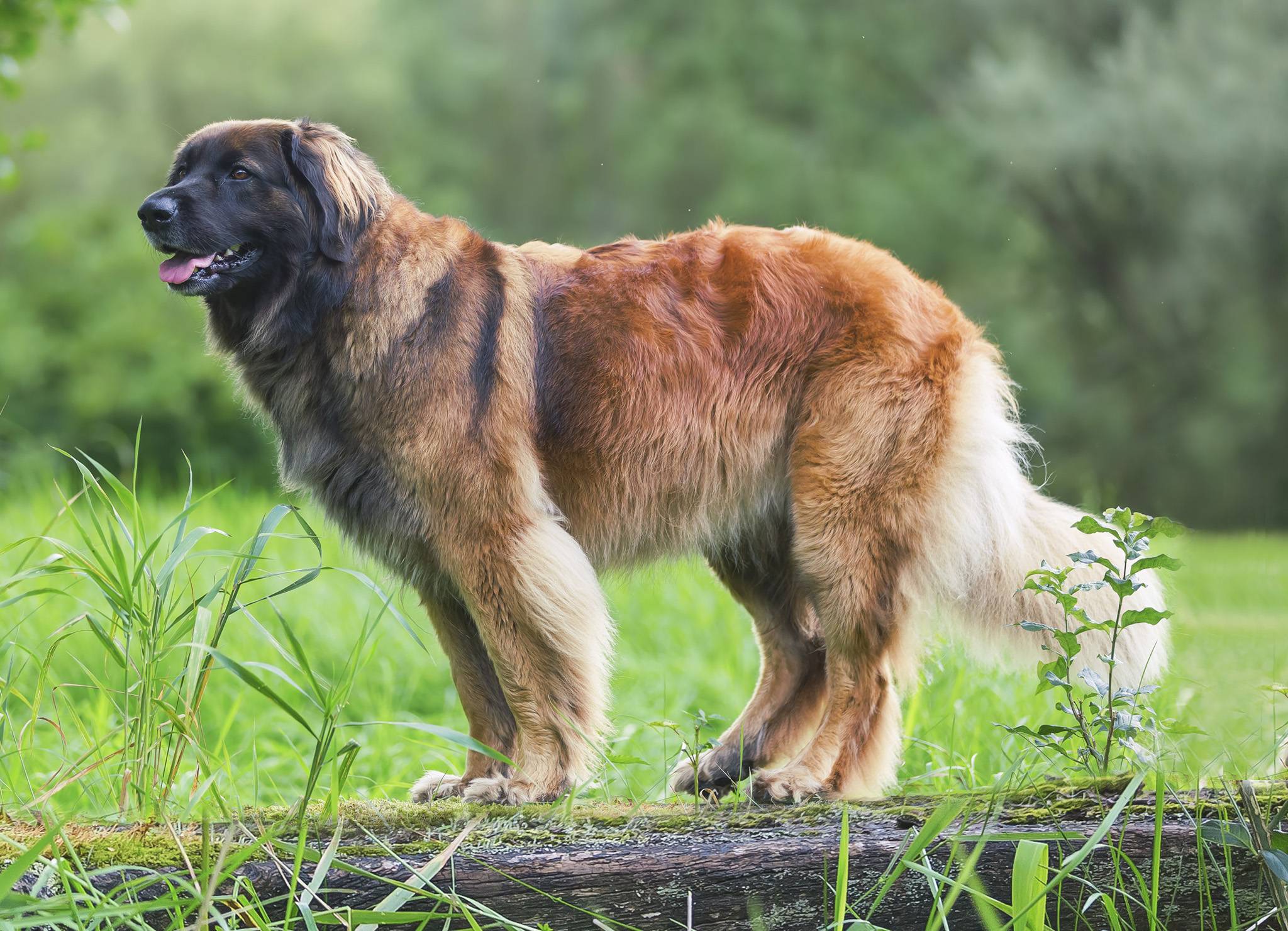 Leonberger is a large stocky dog with a voluminous mane on its head and a black mask on its face. Externally, the animal resembles a small lion and looks pretty scary. The height of males varies from 72 to 80 cm, females - from 65 to 75 cm, which classifies the breed to the group of the largest dogs. The weight of adults is also impressive, and in large males it can reach 72 kg, in bitches - 60.