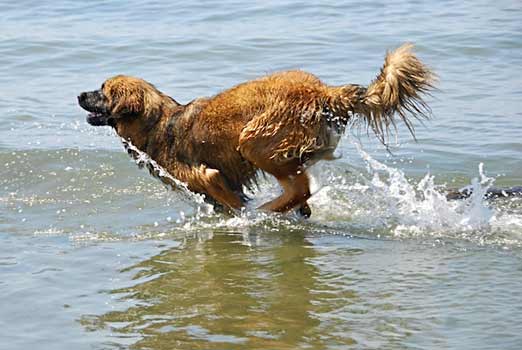 It should also be noted that leonbergers love to swim in open reservoirs, and often serve as lifeguards on the beaches. Therefore, if there is an opportunity, then the dog should be taken to the river as often as possible. Moreover, active games in the water do not give such a large load on the joints, as games on land, but at the same time they strengthen and develop the muscles of the back and limbs much better.