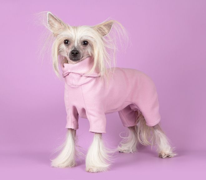 Features of the breed of a bald Chinese crested dog require careful attention to the preservation of its health. Exotic pet most of the year - from autumn to spring - needs special clothing for walking, covering all parts of the body, deprived of wool. When choosing equipment for walking, it is better to give preference to special products made of soft matter - harness or wide collars, not rubbing the delicate skin.