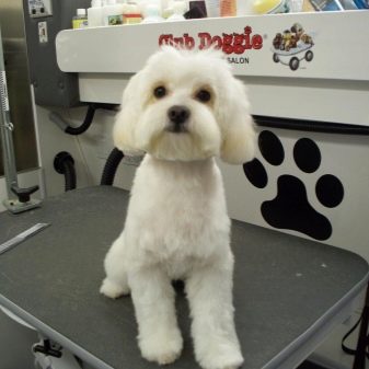 Cleaning the ears and often sour eyes is a mandatory procedure not only in the cabin, but also at home. Ears are cleaned with a special lotion and a cloth. The eyes, which often peel off and turn sour (a legacy from maltesa), are treated with an ophthalmic lotion applied on a napkin, or with a decoction of chamomile or tea solution. On the white wool, the lacrimal paths are still visible. If it is fundamentally important for the owners that the dog has the perfect look, then the tracks are lightened with special powder or conditioner from the pet shop.