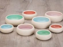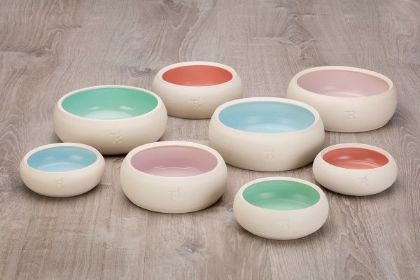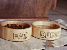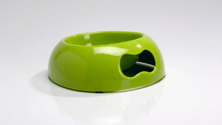 Ceramic dishes are safe and stable, and therefore for such a bowl you do not need to pick up any weighting. It does not slip on the floor, is easy to clean and does not absorb foreign odors. However, this material is fragile, which, coupled with the high cost of the finished product is its significant drawback. As for wooden products, it is impossible to call them comfortable for daily use. Wood is more often used as supports and fixings for the bowls themselves.