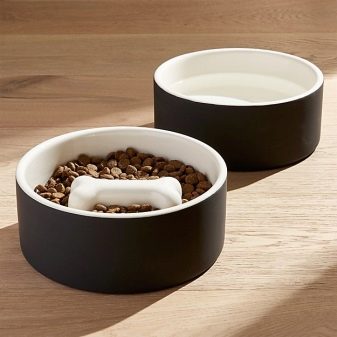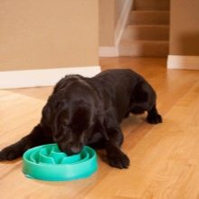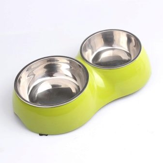 For example, some breeders like products of the usual type with a wide bottom, which do not turn over, as well as options for slowly eating food. Others prefer to buy counterparts on a stand, the package of which often includes two bowls. Depending on the design, it can be height adjustable, which is important for large dogs.