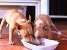 Adult dogs are fed twice a day - early in the morning and in the evening, puppies often - depending on the age up to 5 times a day. If an animal is transferred from one type of food to another, it is done gradually throughout the week, gradually increasing the portions of the new food and reducing the dosage of the previous feed.