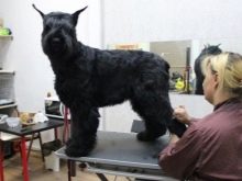 In rizenov remarkable and beautiful long hair, which, unfortunately, grows very quickly and prevents the owners of the dog to live. If, in the case of other dogs, regular combing or washing can help, then a much more radical approach is required. As a rule, the owners prefer to regularly visit the grooming salons (adjusting the appearance of the animal's hair) or independently trim the pet at least once a year.