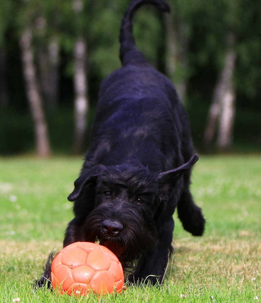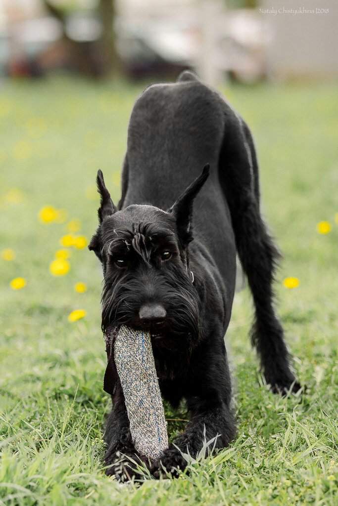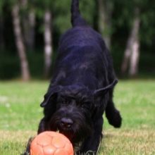 - Energy. It is difficult to find dogs more active and more cheerful Riesenschnuzerov. Outdoors, they frolic like little children, adore games and entertainment, can run in the mornings along with the owner and not get tired for a long time. A burst of energy for these dogs is extremely important, otherwise they will express all their enthusiasm in the walls of the apartment.