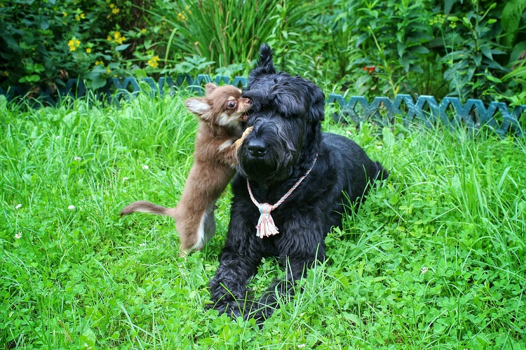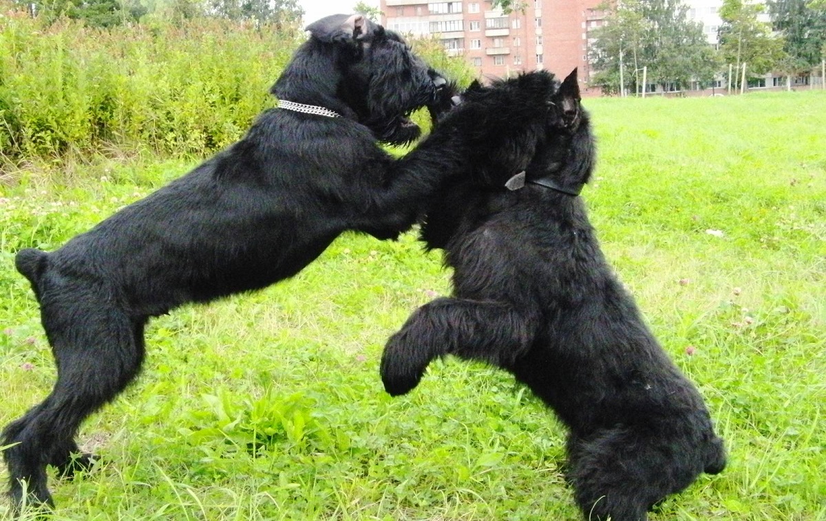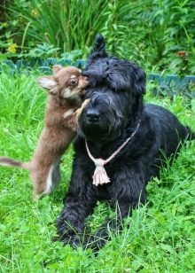 - Attitude to other pets. Like all other breeds of dogs, rizeny restrained attitude to other pets.The relationship between a schnauzer and a cat is especially ambiguous - friendly games are physically impossible here because of the too large size of the dog. If the pets have grown together since birth, then such a friendship will certainly be strong and fruitful.