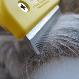 For the procedure, you will need a trimming knife or a comb with frequent metal teeth. In appearance, this process looks like a real peeling of all pet's hair, but this is not at all the case. During this procedure, only the hard guard hair is removed, and not the undercoat itself, which warms the animal and protects it from moisture and frost. Unlike regular haircuts, this procedure is much longer (up to 6 hours) and may in the early stages absolutely not like your pet. It should be taught to gradually, while not trimming too often, so as not to weaken the undercoat itself.