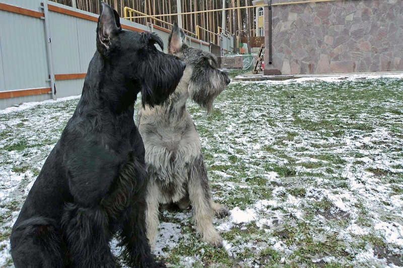 - A born hunter. The scent and ear of the Giant Schnauzers are sharpened for tracking small game and animals. Having conceived that a small animal or bird is nearby, these dogs can completely lose their sense of time and forget about the owner. In order to control these skills, it is recommended to walk these dogs mainly on a leash so that they are accustomed to calmly react to the external environment.