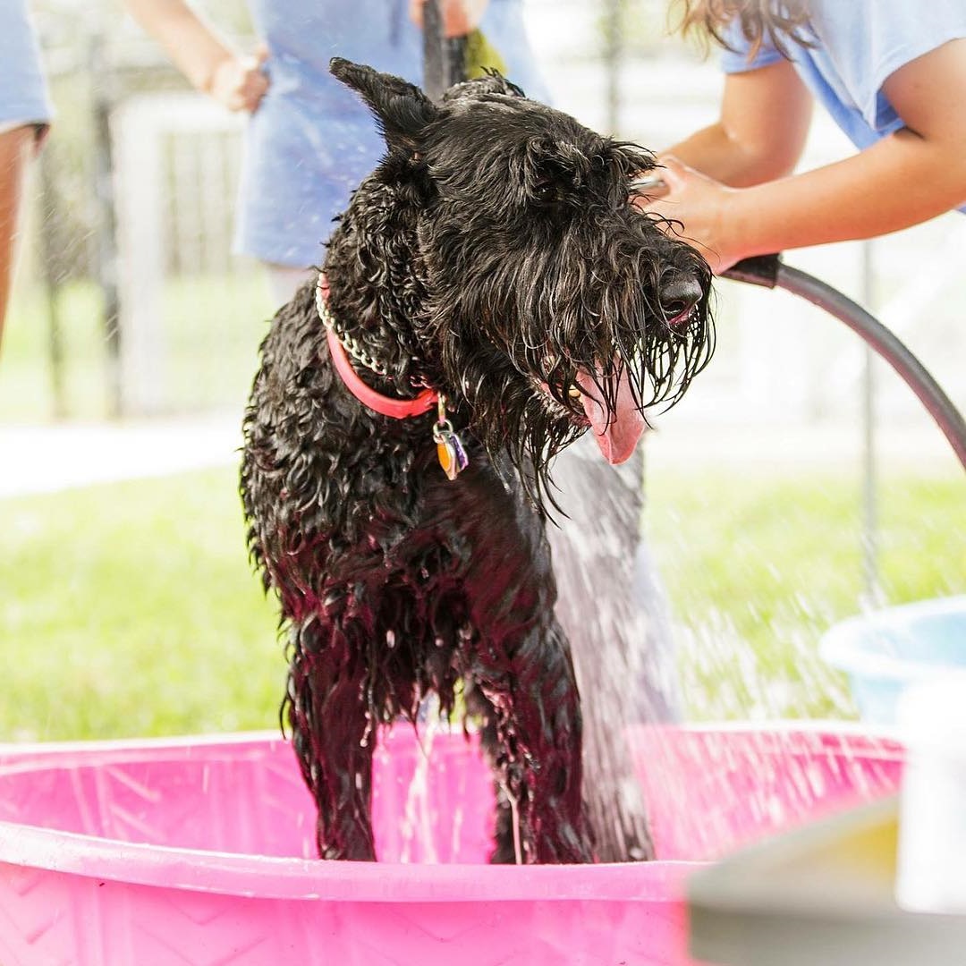 Wash the Giant Schnauzer no more than 1 time in several months. If after walking the animal's fur has become dirty, limit yourself to a small shower or rags to wipe the paws and fur near the genitals.The coat of this breed of dogs is greasy, it does not trap dirt or moisture, and therefore it is worth washing these dogs with shampoo only when necessary.