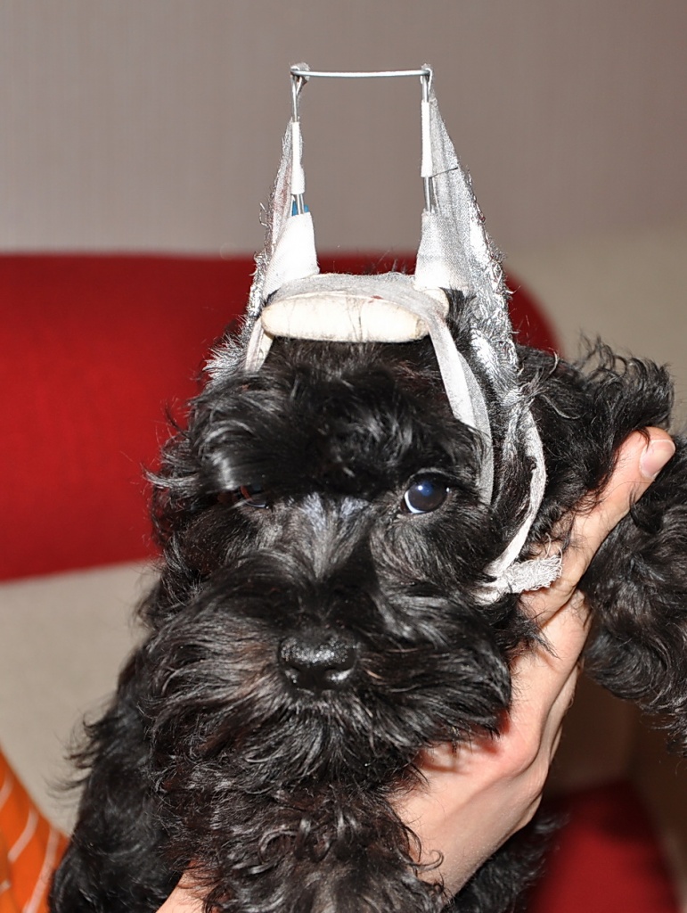 In addition, in the case of rizenov there is a tendency to stop the ears. This procedure is performed to give them an elegant, standing shape. True, these dogs need to glue the cropped ears with a plaster to fix them in a predetermined position and prevent wound infection. This procedure should be entrusted to professionals; at home, the chance of harming the health of the animal is too great, even there is a risk of permanently leaving the pet deaf.