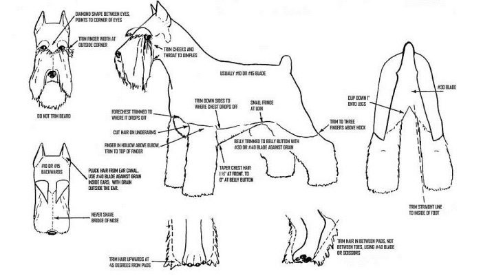 Experienced breeders recommend trimming or grooming to treat the animal's hair on the body - hair is advised on the head and face to be trimmed with a specific haircut. It is carried out according to the following scheme: