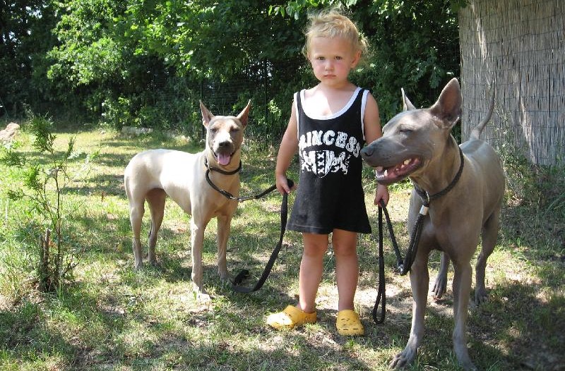 In relation to the small members of the family Thais incredible goodness. They are ready to give themselves completely to games with children, they do not react at all to harassment and careless misdemeanors of kids. Thai Ridgeback feels a soul mate in a child, ready for adventure and fun all day long. However, too frequent fun with children will be harmful for the education of Thais - children are too soft and restless and will give a pet a bad example.If possible, set aside a separate time for raising dances and for communicating with children. If we are talking about the appearance of children in a family with an already adult Thai, neither about the safety of babies, nor about the obedience of a dog, you should not worry.