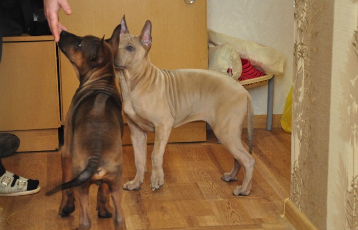 If a Thai puppy grows at the same time as a kitten or dog of a different breed, then no problems with friendship should arise. Thai will also be anxious to protect the other pet, as a full-fledged member of his family. If we are talking about buying a puppy or an adult Thai in an apartment with another adult animal, then there will be no conflicts here. Thais are very jealous and will terrorize another animal behind your back. Regarding street animals, ridgebacks are irreconcilable - they perceive them as entertainment and objects for fun and games.