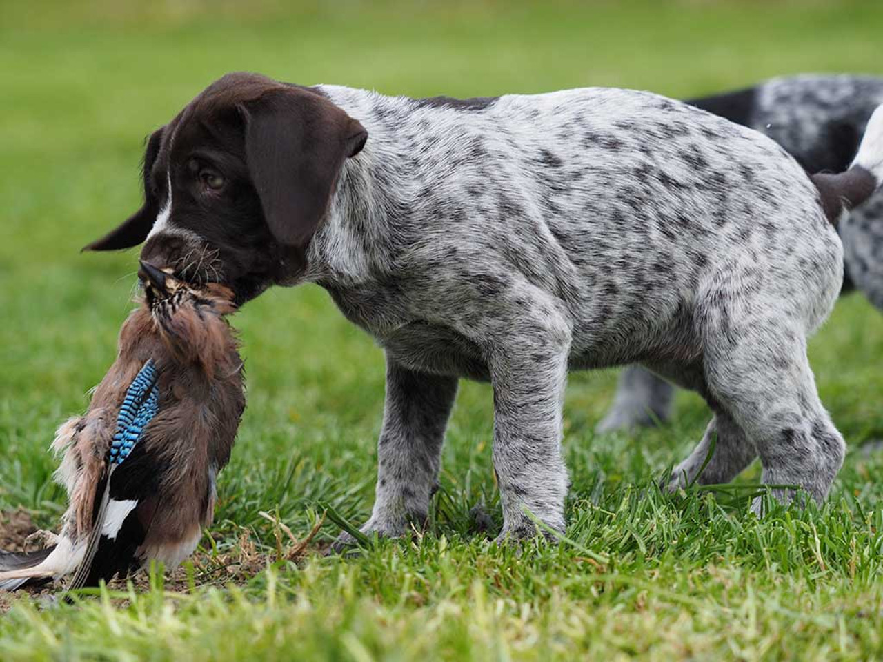 Working skills are embedded in pointers from nature. Even if the parents were not taken out to hunt, their puppies are more likely to be able to cope with their tasks. The first unconscious racks the dog makes already in 2-3 months, at the same age, the observation of the animal increases. In the presence of a working mother, puppies are willing to take all droppings to the forest, and they feel quite confident in adopting the habits of a parent.