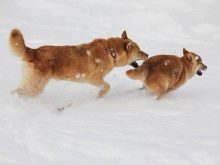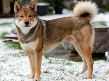 Dogs are medium in size. Hokkaido breed. Initially they were taken out for hunting. The second pet name is Ainu. For a long time, these dogs were brought up in such a way that they were strong, persistent, brave, empathetic and ferocious. For his family, the Ainu is a good defender and bodyguard, affectionate, playful and contact. To strangers, this dog will be treated with great wariness or aggression.