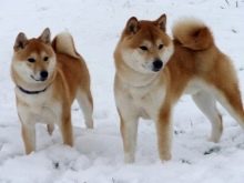 Japanese dogs belong to the service category. Sansu. They also make excellent companions and even security guards. Their coat color can be pure white, pale yellow, red, gray or pinto. The growth of males at the withers is only 46 cm, and the bough is 40 cm. The average lifespan of these animals is 15-17 years.