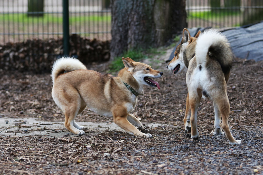 - Japanese breeds have fluffy tails wrapped in ringlets (directed towards the back of the animal).
