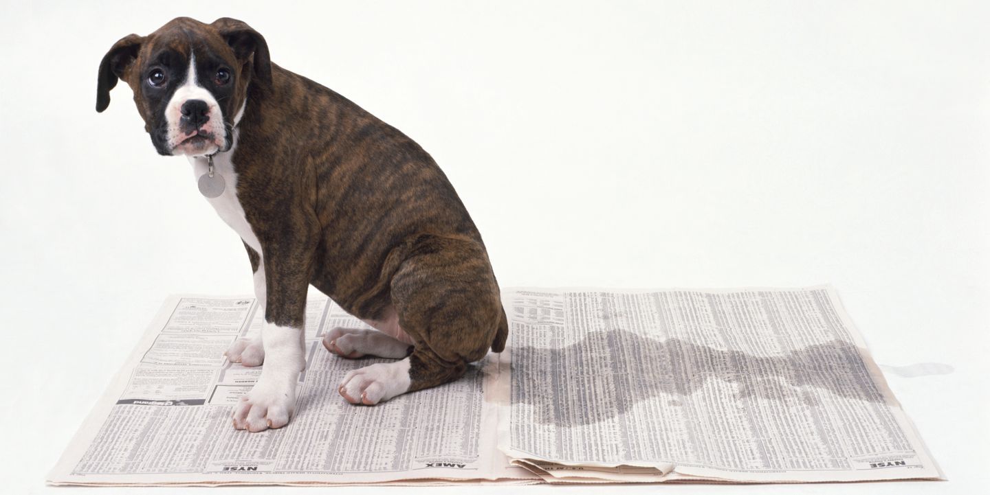 Every time a dog goes to the toilet on a newspaper, she gets a well-deserved reward and even a treat.