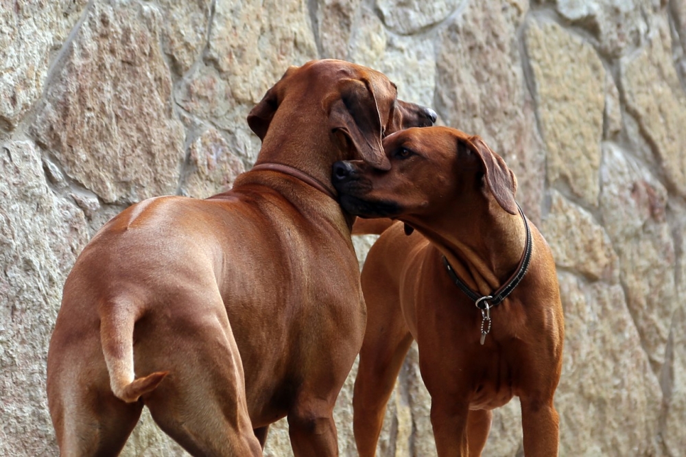 With respect to other animals, ridgebacks behave differently. Most perceives other dogs as rivals for territory, food, love of the owner. Some do not like cats, not only street cats, but also neighbors. Individual individuals of the same breed conflict with each other, and therefore keeping two ridgeback males at home does not make sense. They will constantly sort things out between themselves.