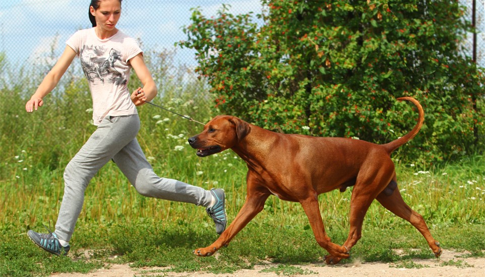 Ridgeback needs long walks, and not only to manage the natural needs on a leash. It is vital for a pet to run, roll on the grass, splash in the water, play actively and run. Given the fact that these dogs are prone to corral prey, in the process of walking with them there may be certain incidents. For example, the same yard cats or domestic rodents of neighbors in their eyes may seem to be potential prey, which, as they say, nature itself ordered to catch.