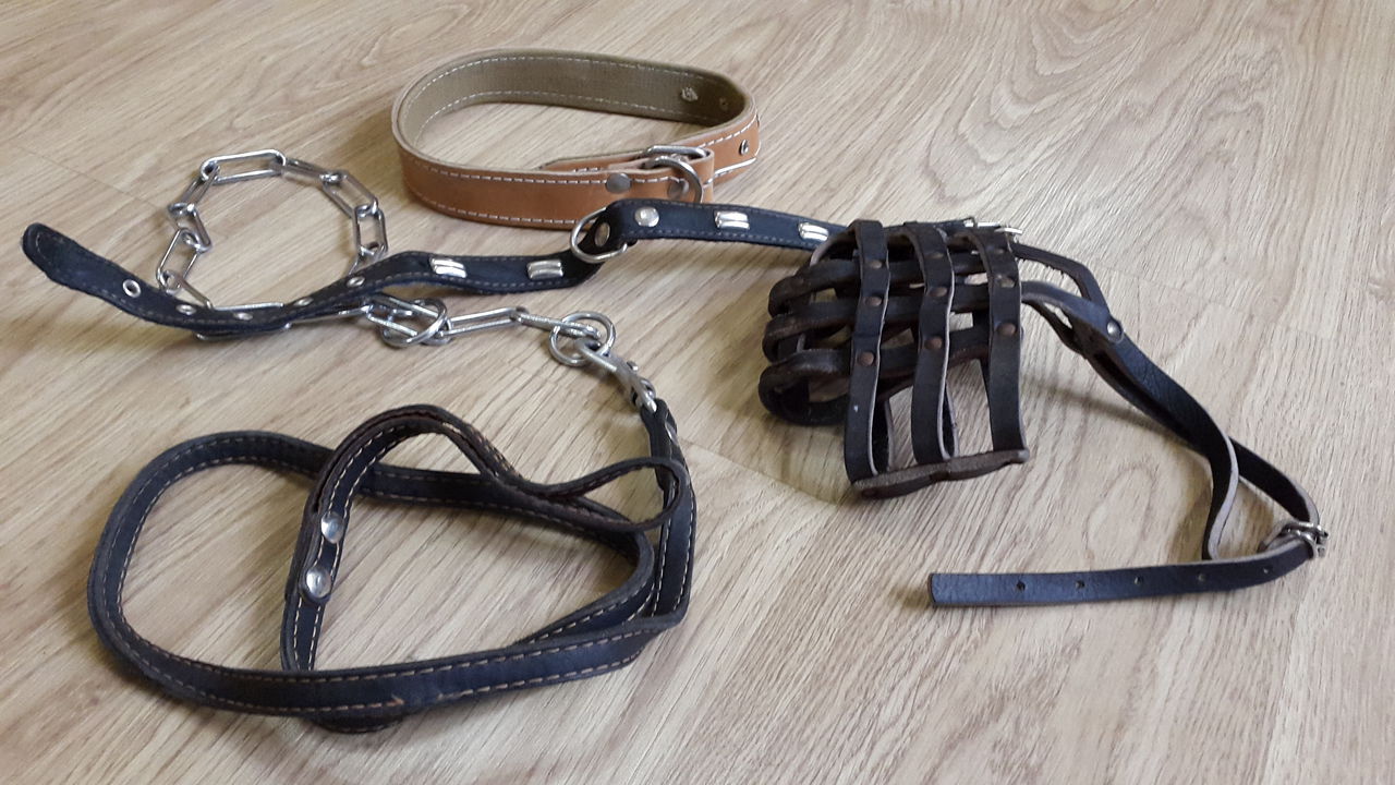 Equipment for walking is selected on the basis of the type of wool, size and weight of the pet. For puppies, leashes and collars are smaller; an adult dog needs a leather muzzle.