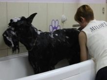 - Hygiene. As already mentioned, the larger the dog, the greater the concerns it delivers to its owners. To maintain a tidy and healthy appearance, you should brush your teeth, wash your eyes and look at your ears at least once a week. In addition, most large breeds of dogs have long and tough coat, which requires regular care. For an integrated and professional care for the appearance of a pet, breeders advise you to contact grooming salons at least once every six months.