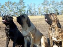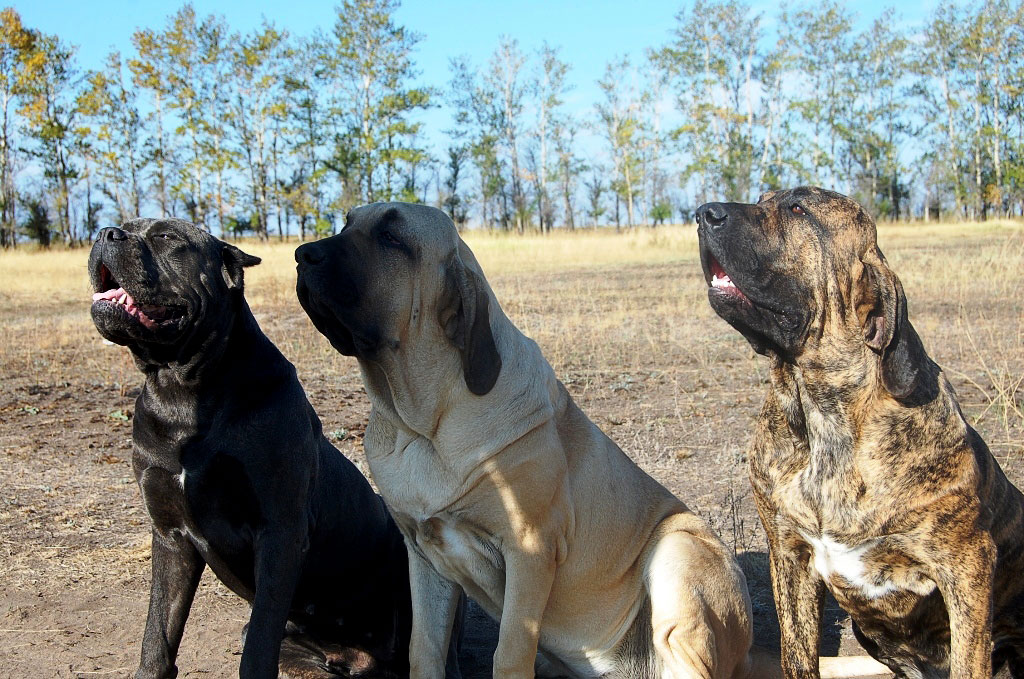 - English Mastiff. It is considered one of the oldest English species. Today it is presented in the form of the largest and most massive variety of dogs in the world. Individuals of this breed grow to 91 cm, with regard to indicators of weight, they can vary significantly depending on the age of the dog - from 70 to 105 kg (in males). Mastiffs differ from their fellows with a balanced, courageous and devoted character. These dogs are considered an ideal family option, as they are patient with children, do not require special care for themselves, and also provide their family members with reliable protection against all detractors.