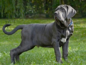Representatives of gigantic species are also included in the list of breeds that fit these characteristics. This means an increase in withers to 75-80 cm and weight over 45 kg. Among the most dimensional individuals most often there are representatives of dog breeds, mastiffs and wolfhounds.