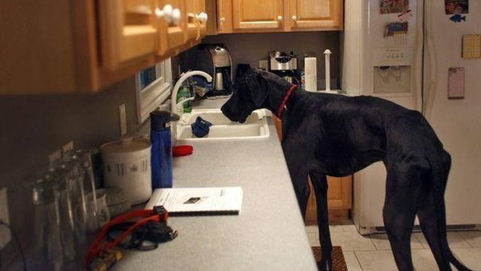 - The tallest dog in the world. A dog named Zeus, a very well-known name among breeders of large dog breeds, is considered a prominent representative of Danish dogs. This dog was simply phenomenal height of 112 centimeters and weighing more than 70 kilograms. Under this growth, Zeus was listed in the Guinness Book of Records as the tallest dog in the world. The owners of Zeus noted that every day their pet required at least 14 kg of fresh food for the full functioning of the body. Despite the fact that Zeus died in 2014, he remains an extremely popular dog among all dog owners.