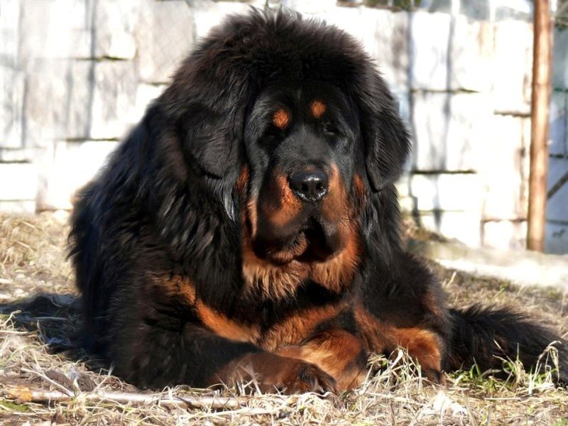 - Tibetan mastiff. To some extent, the legendary breed - many is considered one of the oldest in the world. This breed got its name from the place of its origin and breeding - in Tibetan monasteries, these dogs served as watchmen and guides on dangerous mountainous terrain. Regarding the size of males Tibetan mastiffs can grow up to 81 centimeters in length (bitches - up to 71 cm), and in weight can gain up to 82-85 kilograms. The individuals of this breed are extremely calm, balanced and extremely clean.