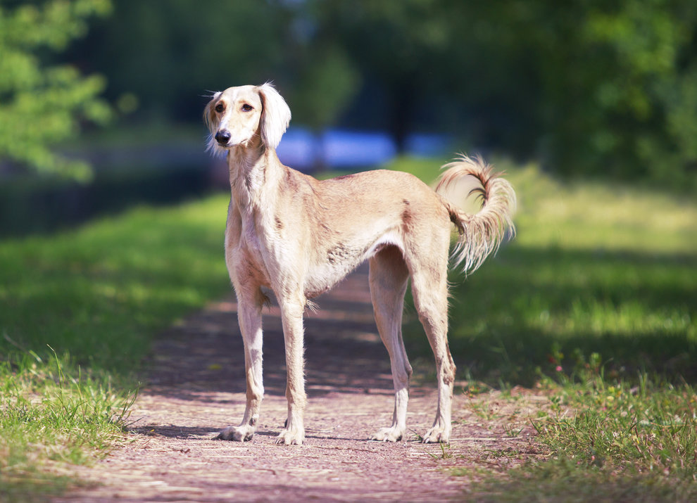 - Saluki. It is a long-legged and fragile animal. It has very slender legs, as well as a fluffy tail and soft fur. The price is quite high (up to 100 thousand rubles) due to the rarity of the breed.