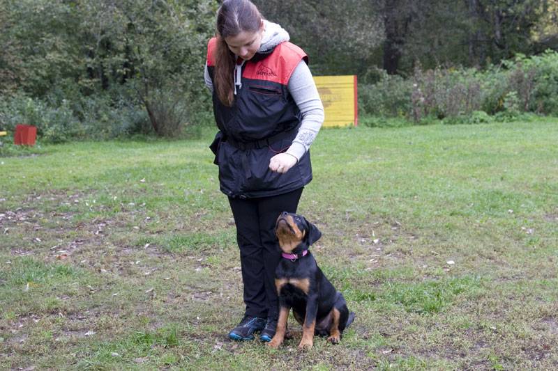 Rottweilers are strong and self-confident dogs that require a human leader. The owner of the dog must constantly show him his primacy in the house. Rottweilers prefer to choose one “leader” in the house and only listen to him. To avoid such a situation, it is necessary to divide pet care equally into all family members, it is advisable to even make a schedule of walking and feeding. Only in this case, the dog will respectfully treat all households.