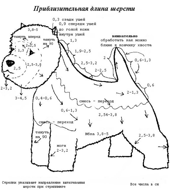 Previously, it was decided to shear the hair only from the paws and muzzle of the animal, but now the standards require cutting all over the body. In total there are 3 options for dog hair.