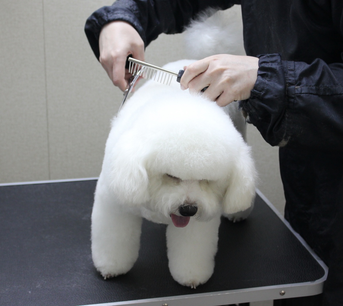 - Bichon's eyes should be clearly visible, so the hair above them cut, pre-combing them up;