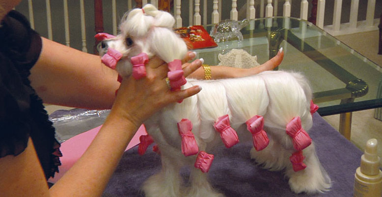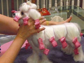 In preparation for the show, the owner of a Maltese breed dog has to master the use of papillotok, allowing you to grow the desired length. Before curling “curlers”, the coat should be lubricated with special oil and saturated with masks and sprays. Individual curls (width of file) are wound and secured with rubber bands.