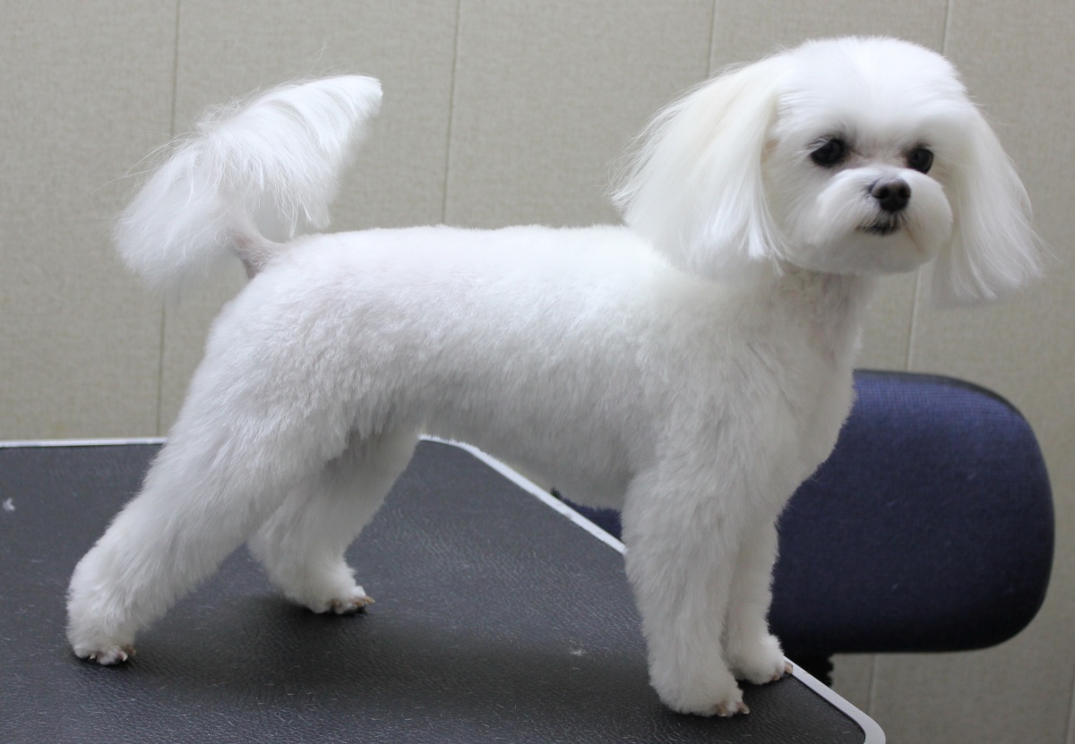Korean style haircut is a popular option for homemade Maltese care. It is also called "Kawai" (toy) and is considered the heritage of anime culture. Grooming involves the preservation of a very short coat on the face of the face, shaving the cheek area. Long hairs remain behind the ears, a cap or a long tail is left on the surface of the head.