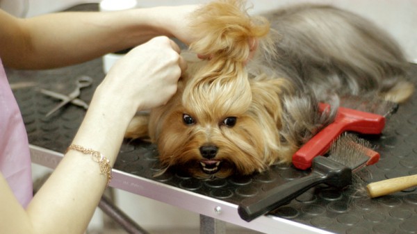 Almost all dogs are not too fond of any manipulation that a person does with their fur. Especially they are afraid of sounds emanating from the typewriter or trimming. When grooming, a dog may not only whine, but also growl, grin, or even bite. To avoid this, it is necessary to teach your pet and combing, and haircut from an early age. Then the animal will not mind them.