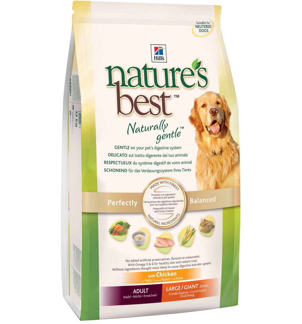 - Hill's. This is an American brand that produces super premium dog food. For large breeds, Nature 's Best series is designed with a completely natural balanced composition. In the list of ingredients you can find the flesh of citrus fruits and marc grapes. The share of meat products reaches 30%.