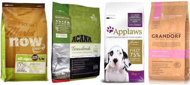 - Acana. This is the Canadian brand of Champion Pet Food. In this line, the manufacturer focused its attention on the meat component of the predators feeding in their natural habitat. Puppy Large Breed, Adult Large Breed for puppies and adult dogs are suitable for large breeds. A distinctive feature is a balanced composition: 60% of meat and 40% of fruits and vegetables (70% of protein in the "children's" diet due to the addition of eggs). Both types of feed are completely grainless.