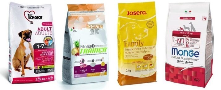 This is a more expensive category, but due to the lack of intelligible standards, the products here are not too different from economical taxes. The meat is still present, but is complemented by offal and cereal fillers. Premium feeds contain healthy dog food. But dyes, cheap preservatives and fats are still used here. This is not the most useful choice for an expensive pedigree dog, but a pet such food is quite suitable.